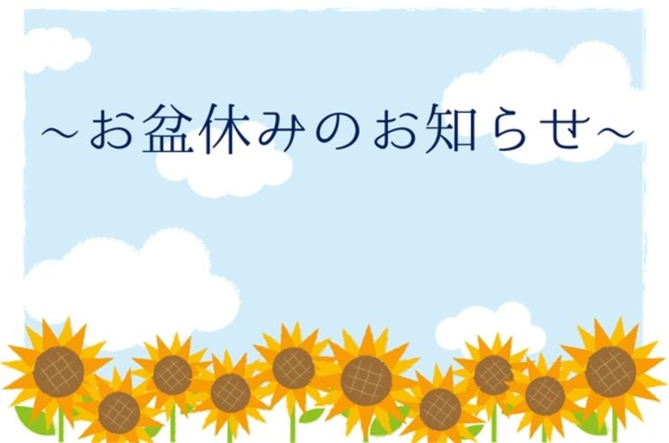 お盆休みは、8/13(土)〜8/15(月)です。よろしくお願い致します。